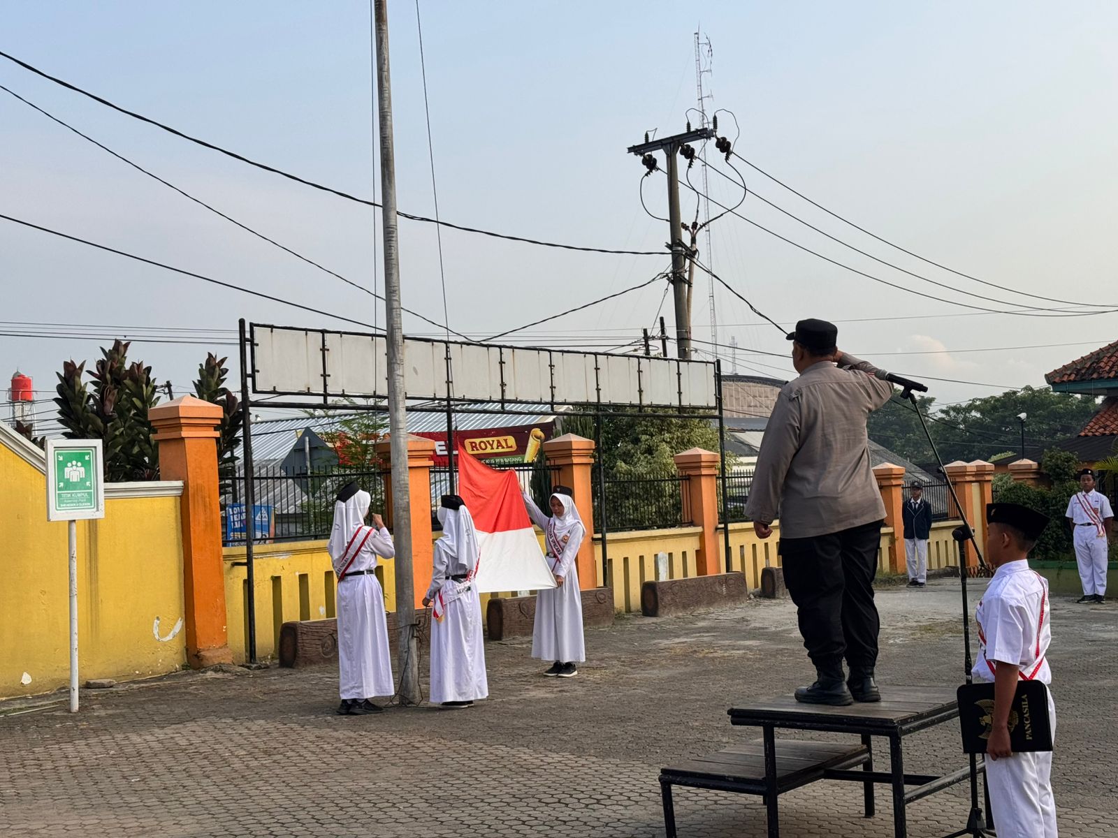Cilegon ~ Satbinmas Polres Cilegon Polda Banten dipimpin oleh PS Kasatbinmas Polres Cilegon IPTU Muhyidin bersama dengan personel Satbinmas Polres Cilegon melaksanakan kegiatan Polisi Peduli Pendidikan dengan menjadi Pembina Upacara di SMPN 2 Cilegon, Senin (20/04/2026).