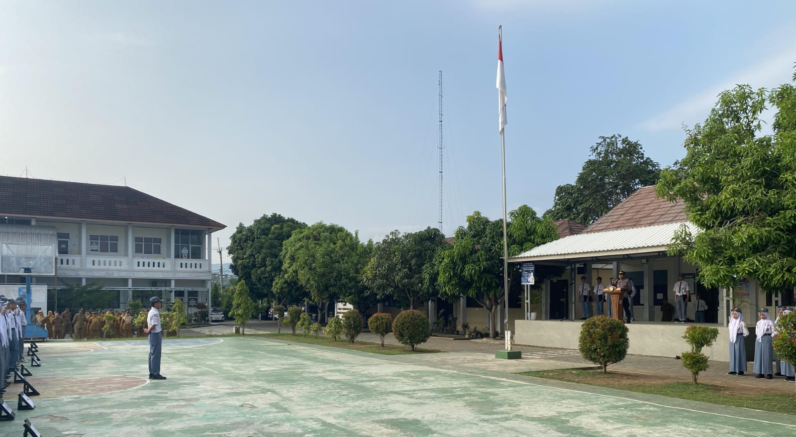 Kapolres Cilegon Polda Banten AKBP Dr. Martua Raja Taripar Laut Silitonga melalui Kapolsek Anyar Polres Cilegon Polda Banten IPTU Tb. Zuaeni menerangkan bahwa telah melakukan kegiatan memimpin Upacara di Sekolah SMKN 1 Anyar, serta mengimplementasikan Program Quick Wins Presisi Polri.