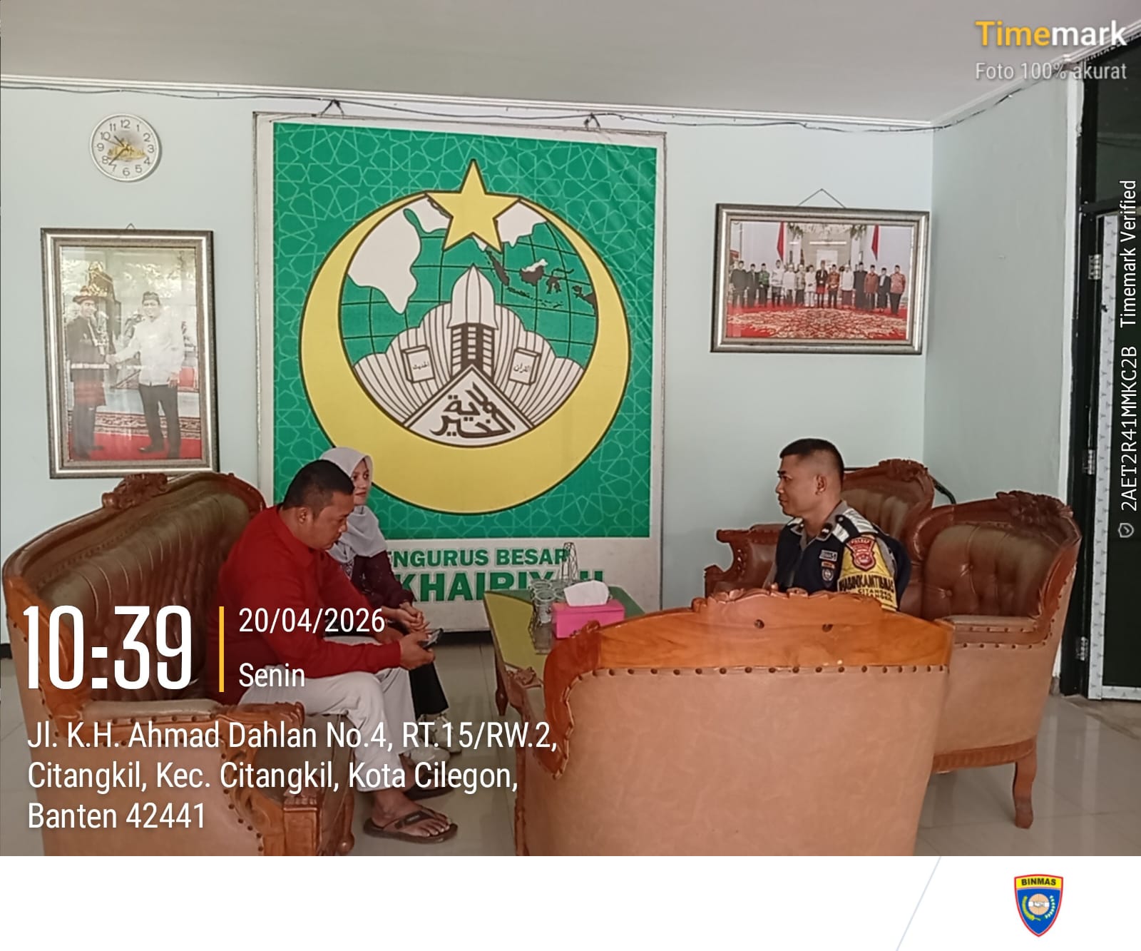 Cilegon - Bhabinkamtibmas Polsek Ciwandan Polres Cilegon Polda Banten melaksanakan kegiatan Patroli Dan sambang Dialogis secara Door to Door Sistem (DDS) serta Berikan Pesan-pesan Kamtibmas Guna Menciptakan situasi Harkamtibmas yang Aman dan nyaman, Senin (20/04/2026).