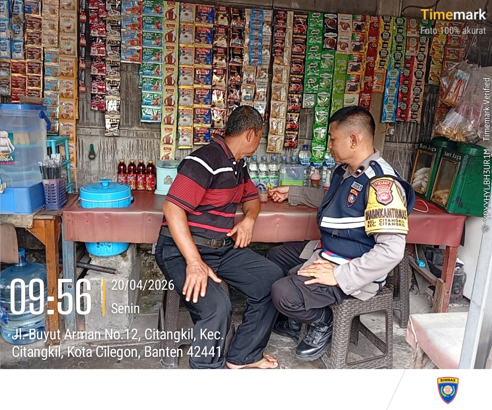 Cilegon - Bhabinkamtibmas Polsek Ciwandan Polres Cilegon Polda Banten melaksanakan kegiatan Patroli Dan sambang Dialogis secara Door to Door Sistem (DDS) serta Berikan Pesan-pesan Kamtibmas Guna Menciptakan situasi Harkamtibmas yang Aman dan nyaman, Senin (20/04/2026).